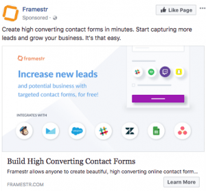 Framestr的“了解更多”CTA按钮与广告文案相关:
